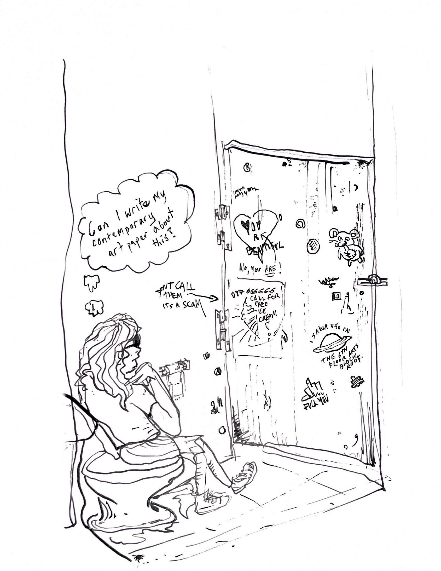 Apart from the endearing characters, an integral promise of the women’s bathroom is the reading material it provides. The Arts Block is no exception. We have all skimmed this genre of stall writing carved, scribbled, or printed in all caps on the walls around us. Before our beloved Trinder, Tringe, and Trossip Girl, there were the Arts Block’s bathroom walls. Trying to explain my concept for this article to friends, I was met with some confused looks. What I wasn’t expecting to find was a whole field of academia dedicated to this niche obsession. Sociolinguistic studies of the writings and imagery we leave in bathroom stalls have coined an academic term for this phenomenon: Latrinalia. And to any amateur researcher interested in the field, let me tell you, the Arts Block is a linguistic treasure trove. Inscribed on these walls is the collective philosophy of all who have passed through them. These words feel like a mix between a motivational Pinterest board and a secret vent account, yet predate the intangibility of such internet posting. Accompanying Latrinalia is the comforting knowledge that those who wrote these messages were once exactly where you are, both in location and in life.